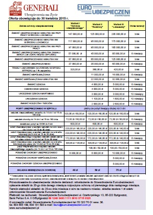 Wielkość urazu ustalana jest na podstawie Tabeli oceny procentowej poważnych. Po tym czasie pracodawca może zdecydować, czy chce ją przedłużyć. Ubezpieczenia zdrowotne - wiadomości, poradniki, porady eksperta, narzędzia. Pracownik również ma możliwość indywidualnej kontynuacji ubezpieczenia, np. Ochrona Jutra to kompleksowe ubezpieczenie na życie, które oprócz podstawowego i najważniejszego ryzyka śmierci, dostępnego od zł miesięcznie, ochroni Ciebie i twoją rodzinę od nieprzewidzianych zdarzeń w wyniku wypadku, hospitalizacji lub twoje dziecko od poważnych zachorowań, inwalidztwa, czy pobytu w szpitalu i. Za zgodą Towarzystwa istnieje możliwość objęcia ochroną ubezpieczeniową danego Ubezpieczonego w ramach więcej niż jednej podgrupy.